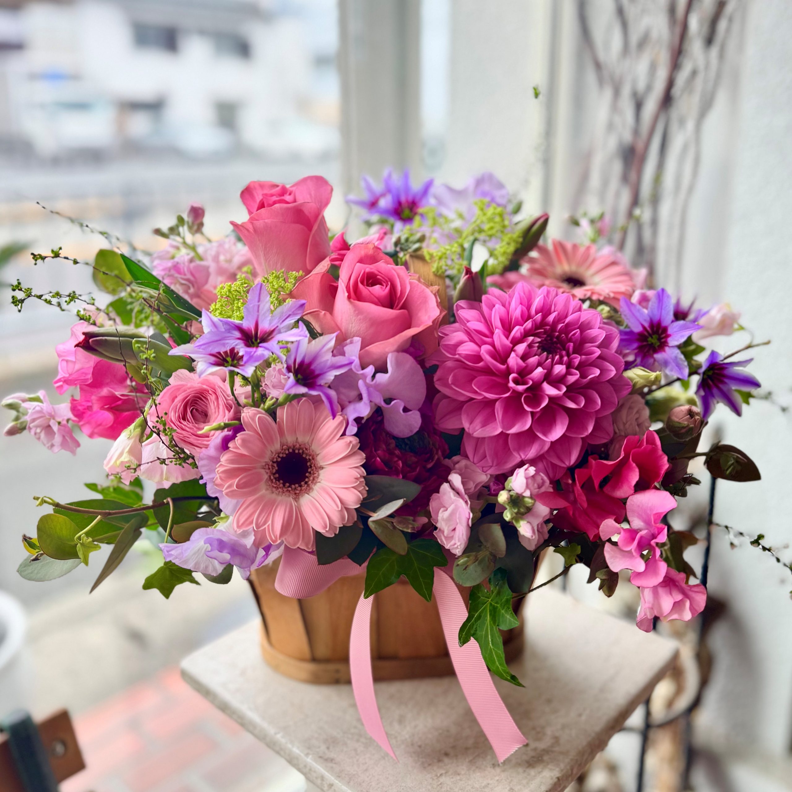 お誕生日・各種お祝いやプレゼント、お悔やみ、お供えなどのお花の贈り物。ご用途に応じたフラワーギフトを、当店のスタッフが心を込めておつくりします。大阪府池田市へのお花のお届けなら当店にお任せください。